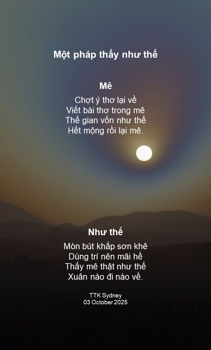 HomeTánh Thuần KhiếtRõ biết 281 - Thấy như thế Rõ biết 281 – Thấy như thế October 3, 2025 0 161 Share Facebook Twitter WhatsApp Linkedin RELATED ARTICLES Rõ biết 280 – Chồi xanh October 2, 2025 Rõ biết 279 – Sương mi October 1, 2025 Rõ biết 278 – Không đạo September 3, 2025 Weather Australia scattered clouds enter location 21.9 ° C 21.9 ° 21.9 ° 30 % 4.5kmh 48 % Thu 22 ° Fri 36 ° Sat 36 ° Sun 38 ° Mon 28 ° CALENDAR LATEST NEWS Rõ biết 281 – Thấy như... October 3, 2025 Rõ biết 280 – Chồi xanh October 2, 2025 Rõ biết 279 – Sương mi October 1, 2025 Rõ biết 278 – Không đạo September 3, 2025 About Me About Me Tánh Thuần Khiết Media Quick Links Insights Teaching & Practice Research & Notes Stay connected 16,985FansLike2,458FollowersFollow61,453SubscribersSubscribe