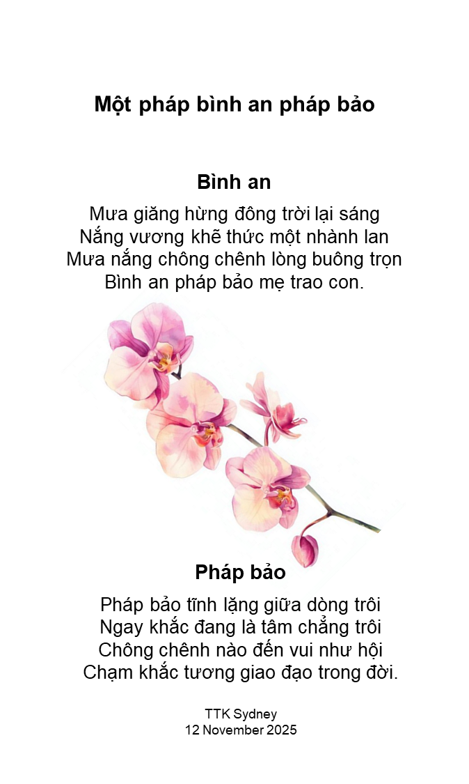 HomeTánh Thuần KhiếtRõ biết 284 - Bình an pháp bảo Rõ biết 284 – Bình an pháp bảo November 12, 2025 0 216 Share Facebook Twitter WhatsApp Linkedin RELATED ARTICLES Rõ biết 285 – Đạo bất sinh December 1, 2025 Rõ biết 283 – Duyên sáng November 2, 2025 Rõ biết 282 – Về không November 1, 2025 Weather Australia clear sky enter location 39.9 ° C 39.9 ° 39.9 ° 6 % 2kmh 0 % Fri 41 ° Sat 43 ° Sun 34 ° Mon 37 ° Tue 41 ° CALENDAR LATEST NEWS Rõ biết 285 – Đạo bất... December 1, 2025 Rõ biết 284 – Bình an... November 12, 2025 Rõ biết 283 – Duyên sáng November 2, 2025 The power of imperfection November 1, 2025 About Me About Me Tánh Thuần Khiết Media Quick Links Insights Teaching & Practice Research & Notes Stay connected 16,985FansLike2,458FollowersFollow61,453SubscribersSubscribe