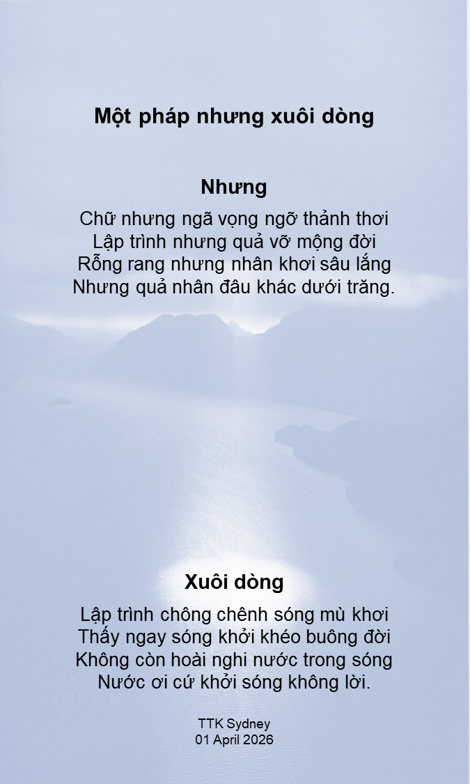 HomeTánh Thuần KhiếtRõ biết 290 – Nhưng xuôi dòng Rõ biết 290 – Nhưng xuôi dòng April 1, 2026 0 5 Share Facebook Twitter WhatsApp Linkedin RELATED ARTICLES Rõ biết 289 – Xuân không thời February 28, 2026 Rõ biết 288 – Xuân mới February 17, 2026 Rõ biết 287 – Không ta thấy đạo ca February 1, 2026 Weather Australia clear sky enter location 25 ° C 25 ° 25 ° 24 % 4kmh 0 % Tue 25 ° Wed 34 ° Thu 35 ° Fri 35 ° Sat 35 ° CALENDAR LATEST NEWS Rõ biết 290 – Nhưng xuôi... April 1, 2026 Rõ biết 289 – Xuân không... February 28, 2026 Rõ biết 288 – Xuân mới February 17, 2026 Rõ biết 287 – Không ta... February 1, 2026 About Me About Me Tánh Thuần Khiết Media Quick Links Insights Teaching & Practice Research & Notes Stay connected 16,985FansLike2,458FollowersFollow61,453SubscribersSubscribe
